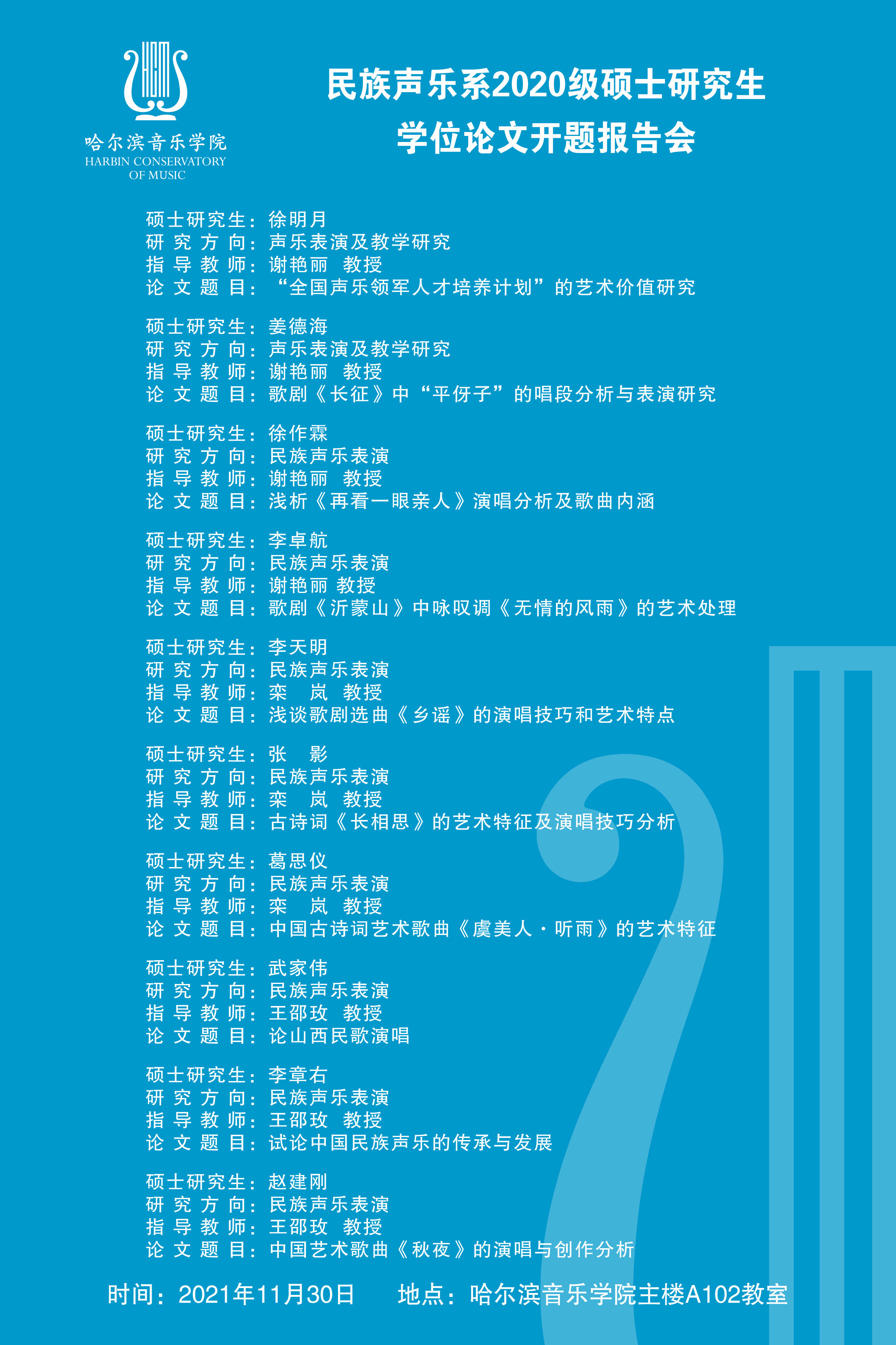 民族声乐系2020级硕士研究生学位论文开题报告会