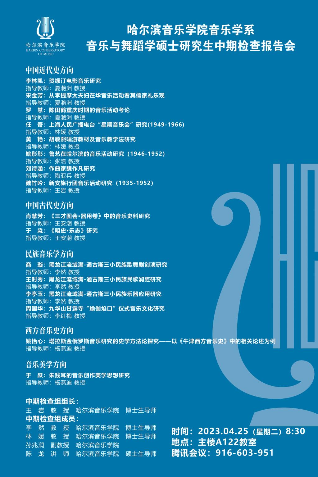 永利23411集团音乐学系音乐与舞蹈学硕士研究生中期检查报告会