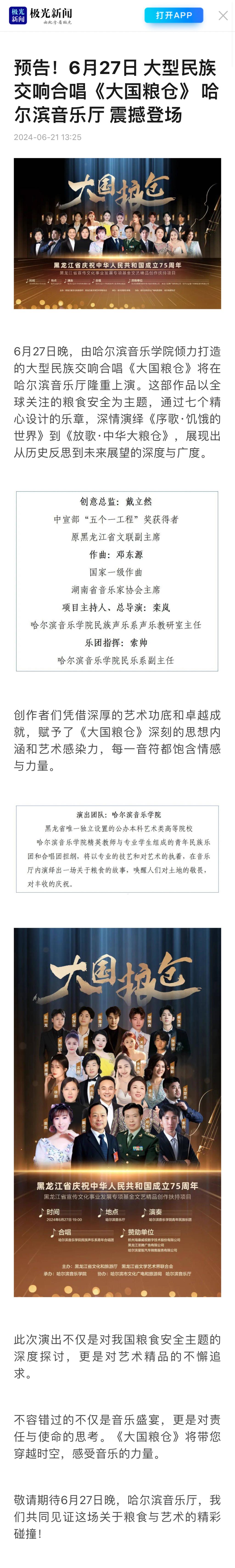 上一条:人民日报:交响合唱团《大国粮仓》6月27日将在哈尔滨上演