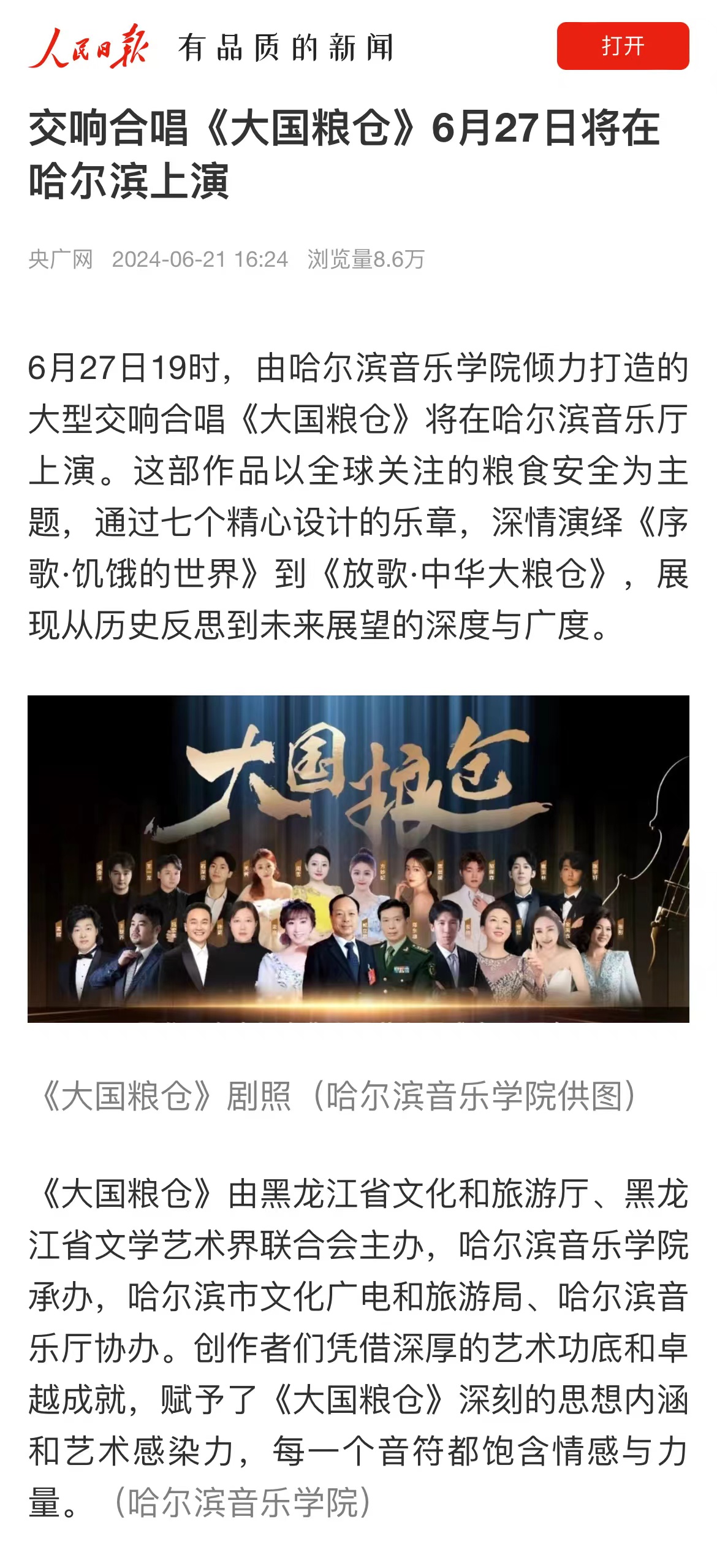 上一条:央广网:交响合唱《大国粮仓》6月27日将在哈尔滨上演