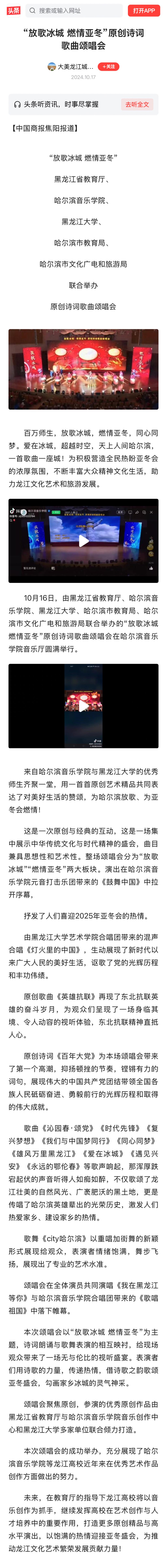 下一条:龙头新闻:相约哈尔滨 逐梦亚冬会 | “放歌冰城 燃情亚冬”原创诗词歌曲颂唱会激情唱响
