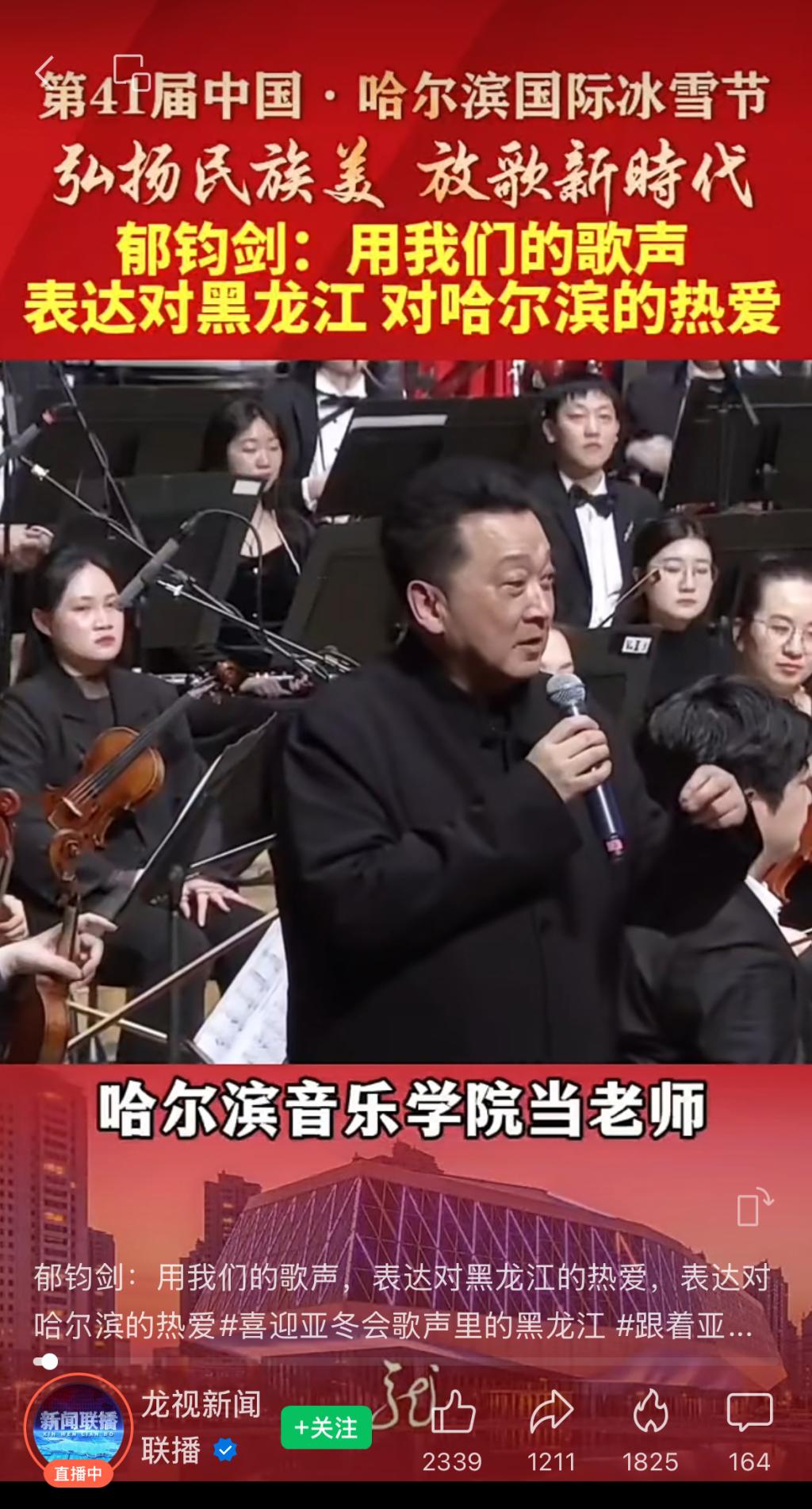 龙视新闻联播:郁钧剑:用我们的歌声表达对黑龙江 对哈尔滨的热爱