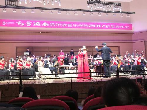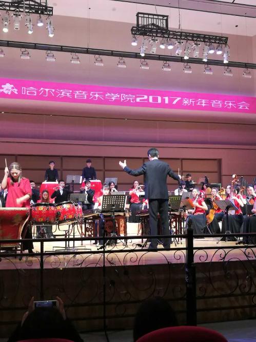 音乐会由民族器乐曲《龙腾虎跃》拉开序幕,这部作品感情炽热、气势磅礴,吹管乐与打击乐交相辉映、扣人心弦,将大家带入喜悦欢快的节日气氛;随后是中方教师的竹笛独奏“乐春”,该曲具有东北秧歌曲调风格,表达了对春天的渴望;巴扬独奏、女声二重唱演绎热情奔放的探戈,经典美妙的歌声仿佛让人置身浪漫的欧美异域;俄方教师的钢琴弦乐三重奏、女高音独唱等,让大家感受到了俄罗斯音乐的独特风格和魅力;中俄教师联袂的《为钢琴与木管而作的六重奏》将钢琴与管乐完美结合,更展现了哈音中俄联合办学的理念和特色;钢琴系主任元杰的钢琴独奏《蝙蝠序曲》让观众欣赏到了“圆舞曲之王”约翰·施特劳斯的经典之作;声乐歌剧系学生合唱《年轻的朋友来相会》以优美动人的曲调、欢快流畅的旋律,表达对祖国的热爱;最后音乐会在重唱《祖国,我为你干杯》中落下帷幕。