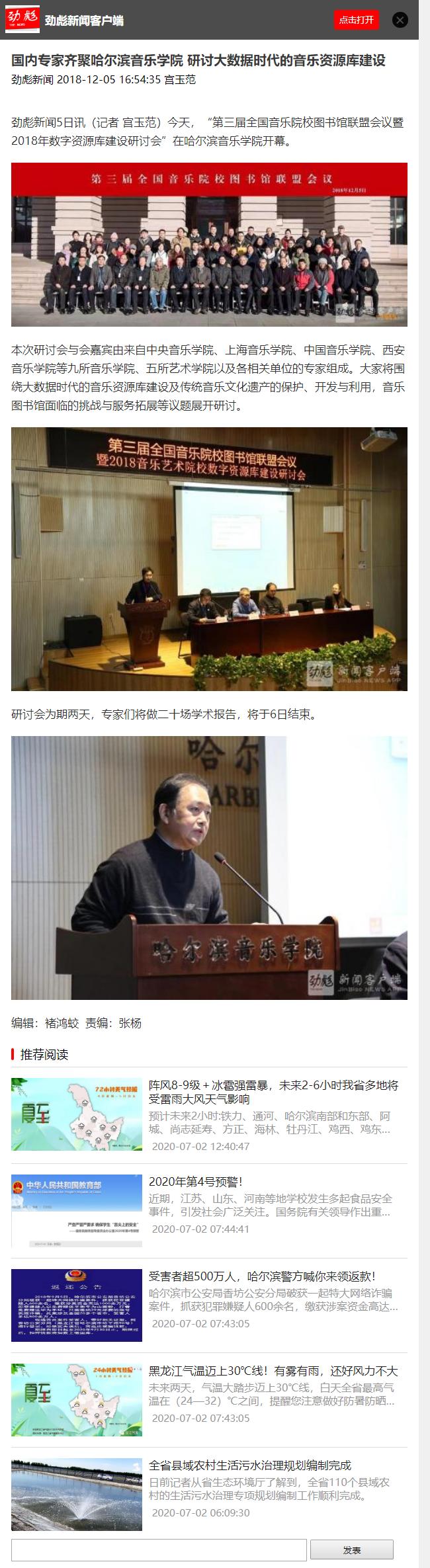 下一条:人民网:“第三届全国音乐院校图书馆联盟会议暨2018年数字资源库建设研讨会”在哈尔滨开幕