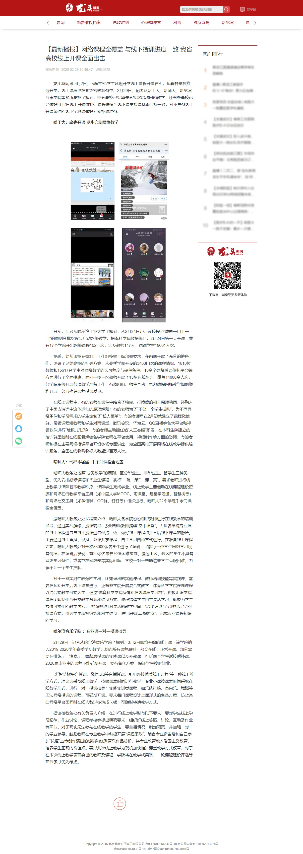 网易黑龙江:永利23411集团全面推进新学期线上教学