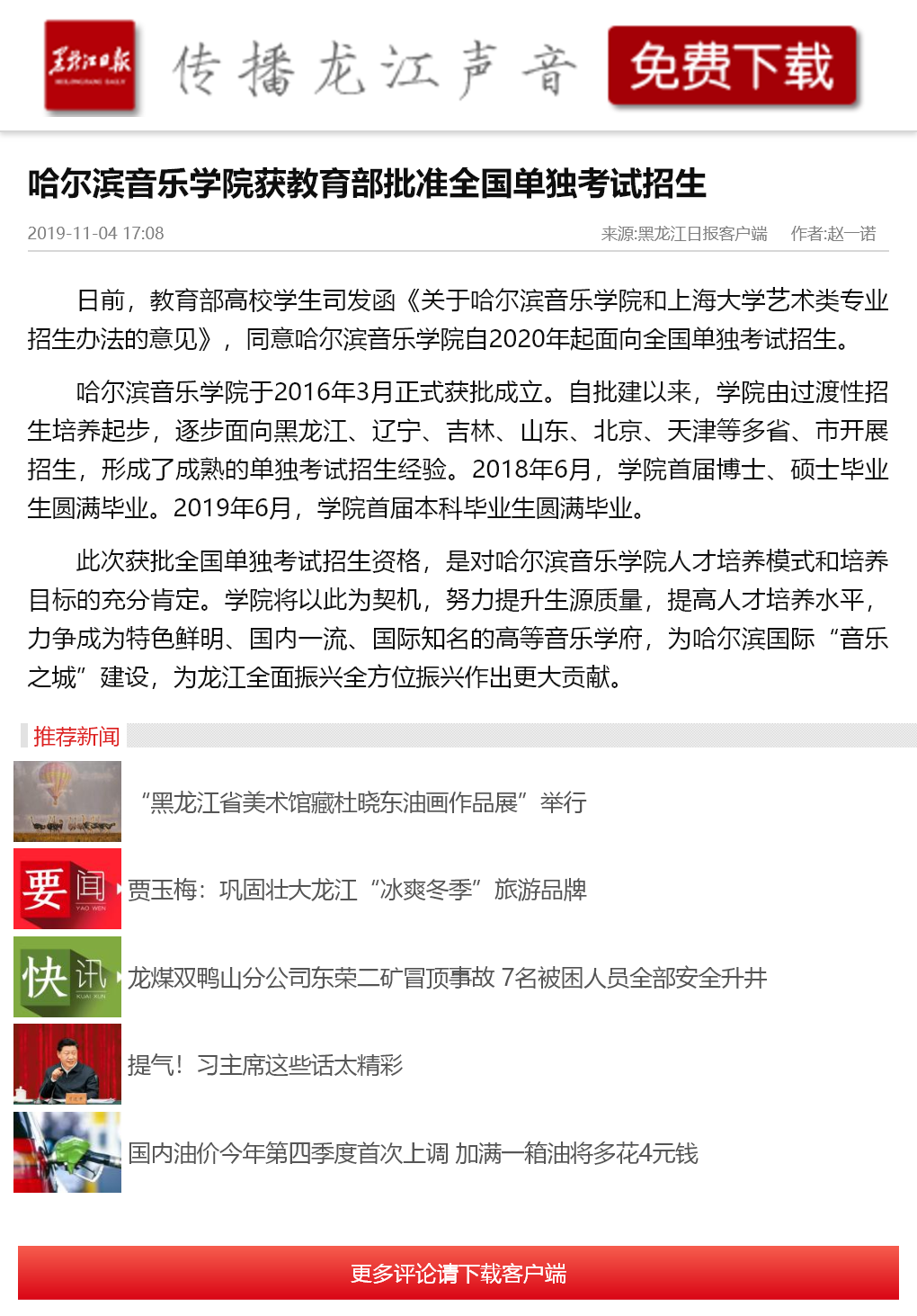 黑龙江日报:永利23411集团获教育部批准全国单独考试招生