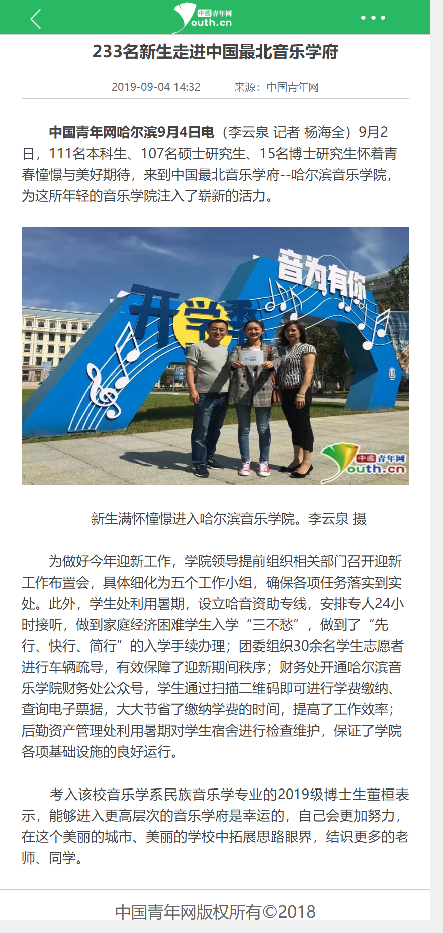 龙头新闻:本硕比例1:1哈音迎来233名新生