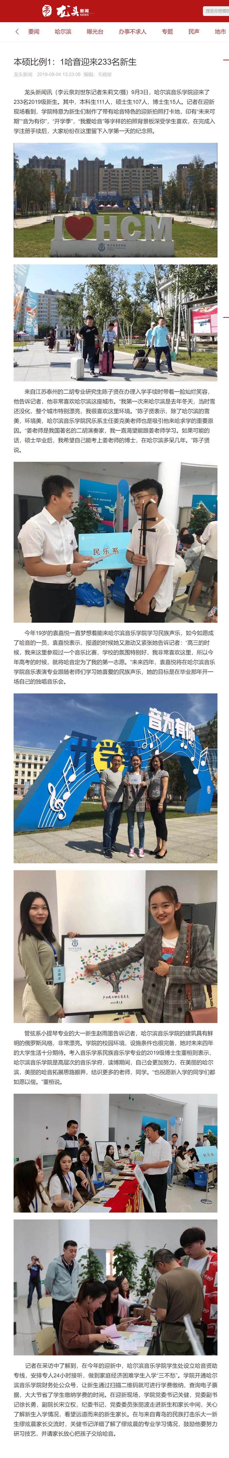龙头新闻:本硕比例1:1哈音迎来233名新生