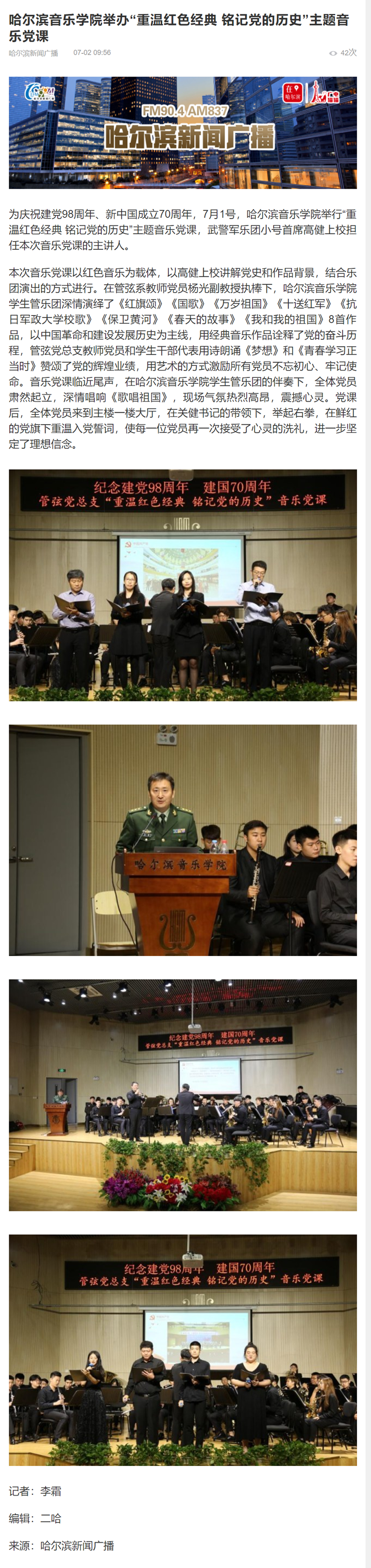 下一条:东北网:哈音院举办“重温红色经典 铭记党的历史”主题音乐党课