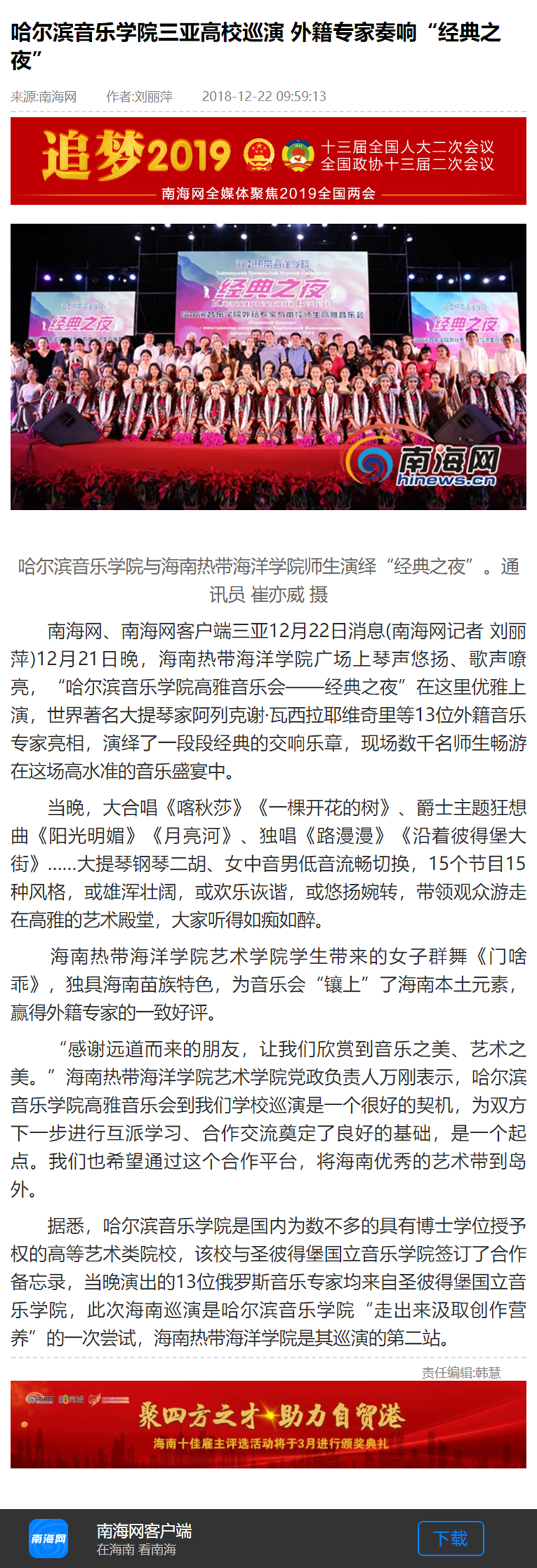 下一条:中新网:“俄罗斯之乐−−永利23411集团外籍专家专场音乐会”海口奏响