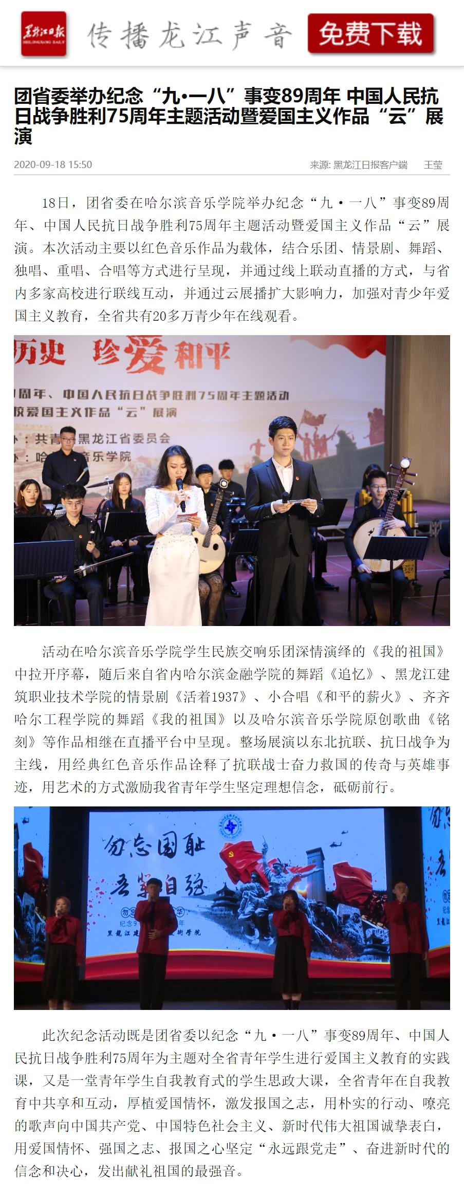 下一条:网易黑龙江:永利23411集团举办纪念“九·一八”事变89周年、中国人民抗日战争胜利75周年爱国主义作品“云”展演
