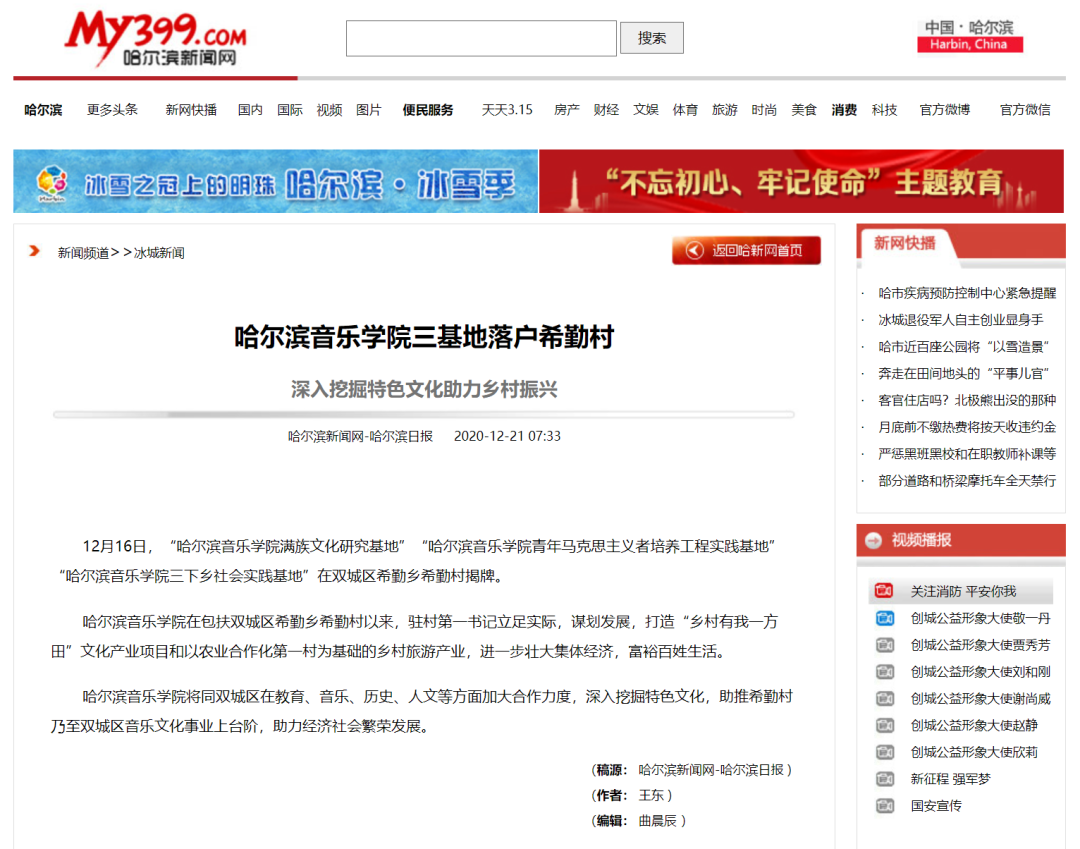 哈尔滨新闻网:永利23411集团三基地落户希勤村