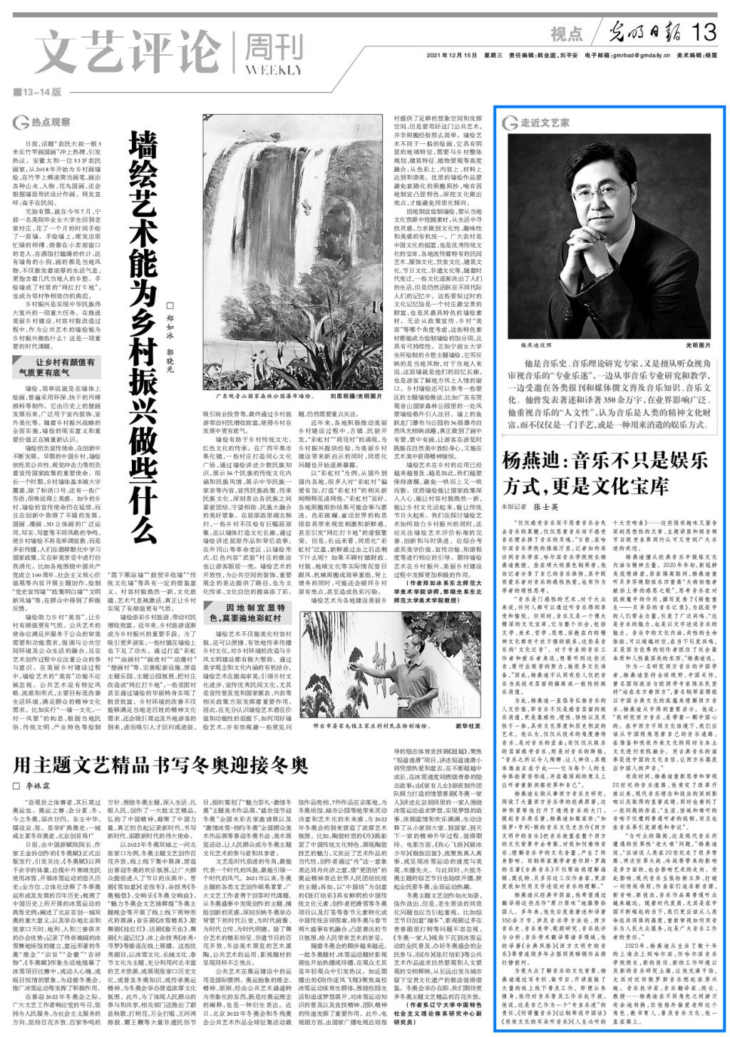 “与听众的隔阂,这是现代音乐所遭遇的世界性‘老大难’问题。”杨燕迪说,“应该说人类在20世纪走了很多弯路,两次世界大战、冷战等带来的影响是多方面的,也会影响艺术的走向。受此影响,现代音乐主张标新立异、打破一切传统准则,作曲家们追求新音源、新音响、新技法,音乐作品离普通听众越来越远。随着时代发展,尤其是在中国不断崛起的当下,我们更应该从人类命运共同体的高度,重新审视如何用音乐为人民大众服务,这是广大音乐工作者的责任。”