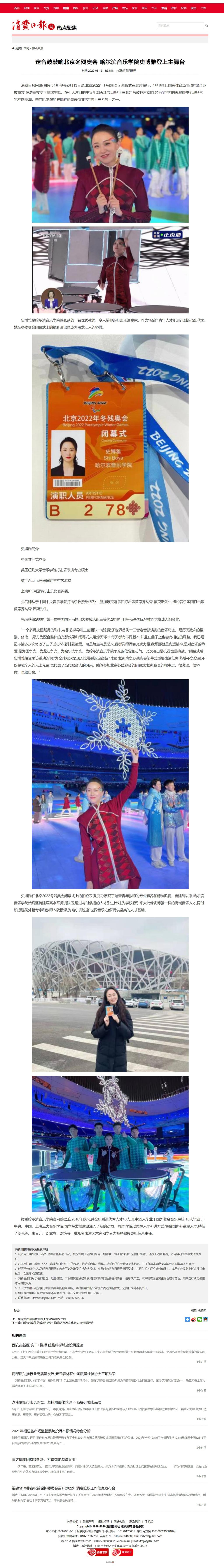 消费日报:定音鼓敲响北京冬残奥会 永利23411集团史博雅登上主舞台