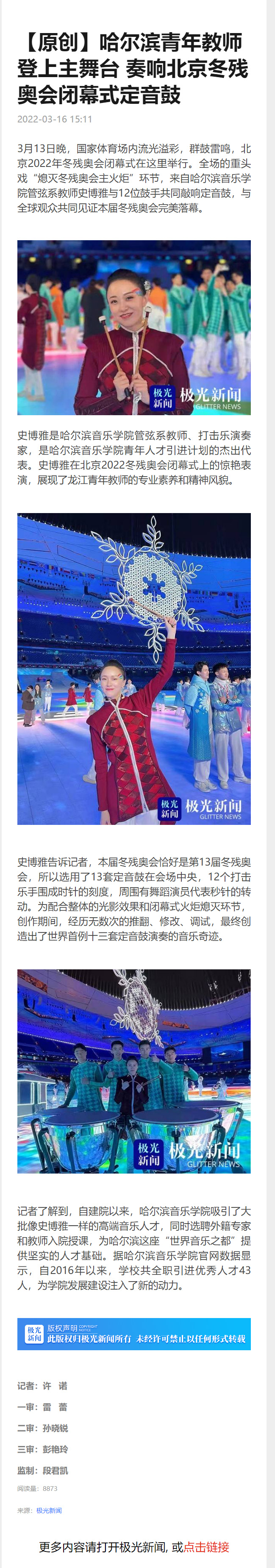 上一条:龙头新闻:北京冬残奥会闭幕式奏响定音鼓,90后哈尔滨音乐教师史博雅:创造奇迹那一刻,我热泪盈眶