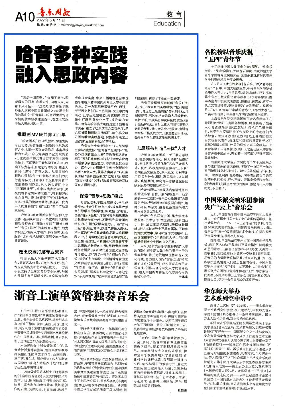 近年来,哈音团委依托专业和人才优势,逐步探索出了一条富有时代特征和哈音特色的“理论+实践”“课堂+舞台”“音乐+思政”的实践育人模式,助力学院充分发挥人才培养、科学研究、社会服务、文化传承创新和国际交流合作的重要职能。
