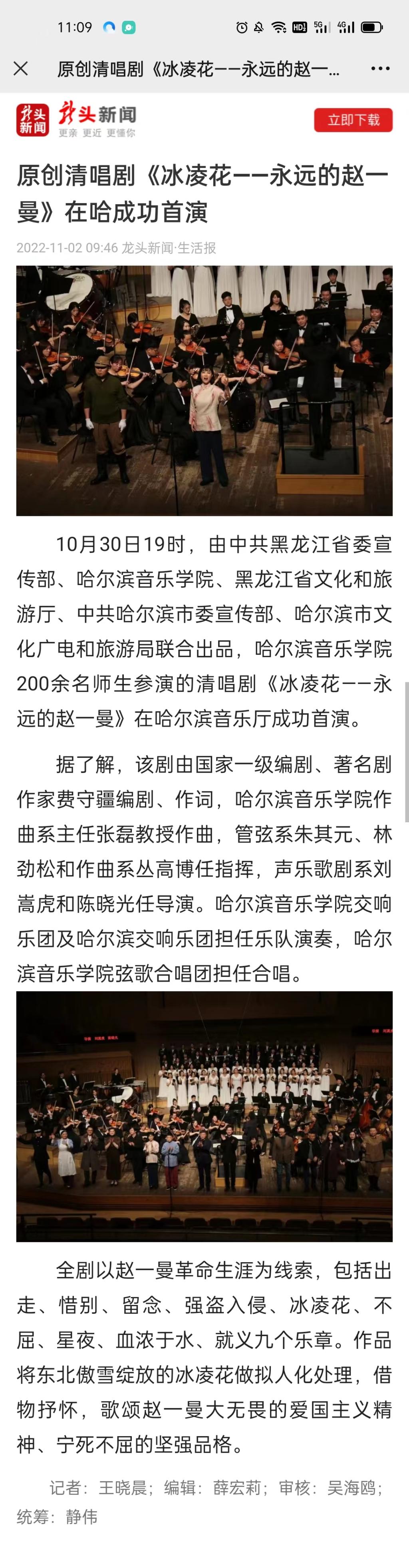 上一条:龙头新闻·生活报:原创清唱剧《冰凌花——永远的赵一曼》在哈成功首演