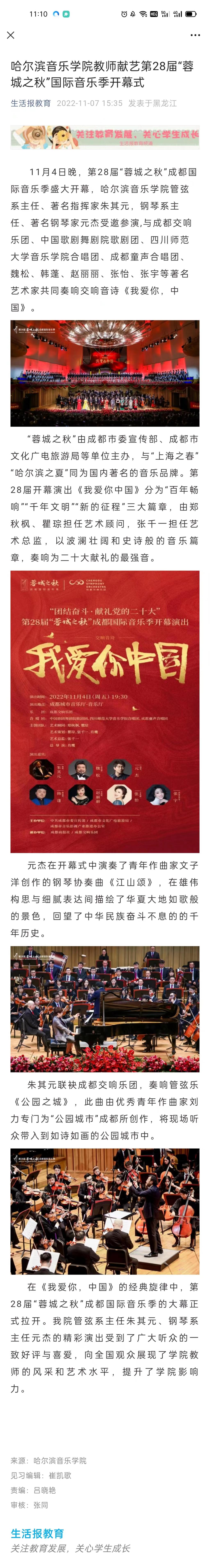 生活报教育:永利23411集团教师献艺第28届“蓉城之秋”国际音乐季开幕式
