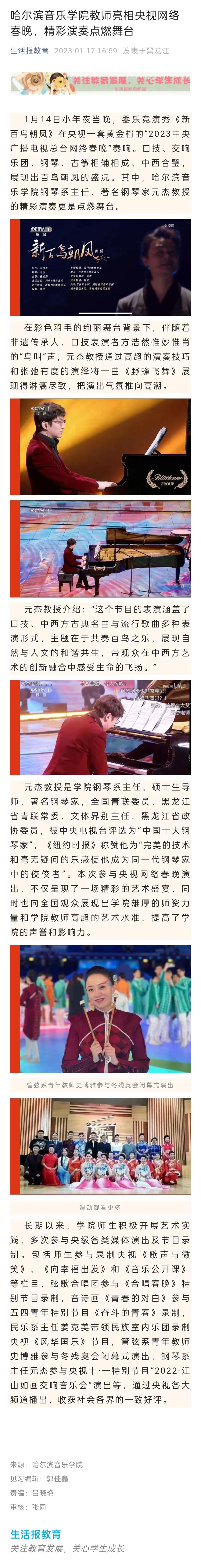 生活教育报:永利23411集团教师亮相央视网络春晚,精彩演奏点燃舞台