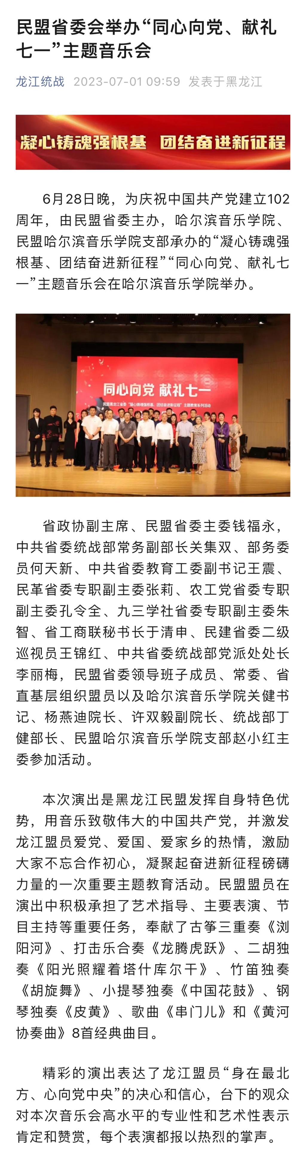 下一条:黑龙江政协:民盟黑龙江省委举办“同心向党 献礼七一”主题音乐会