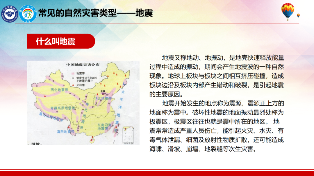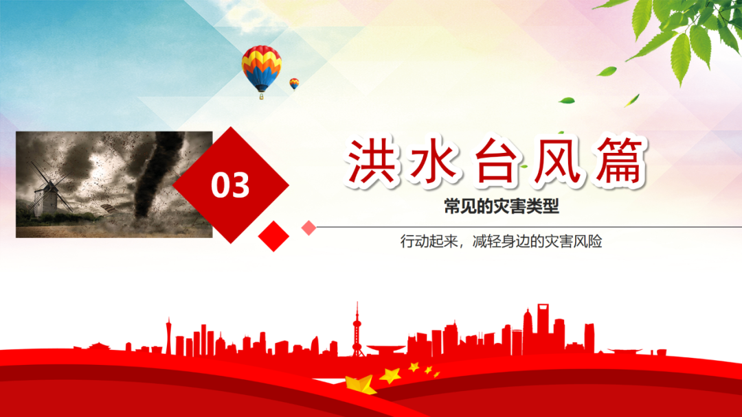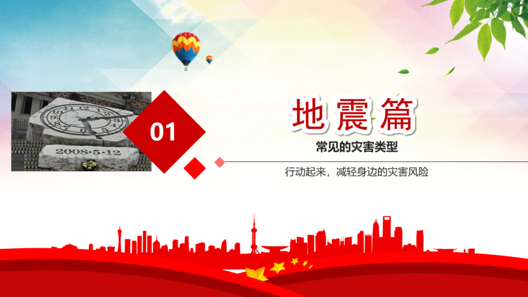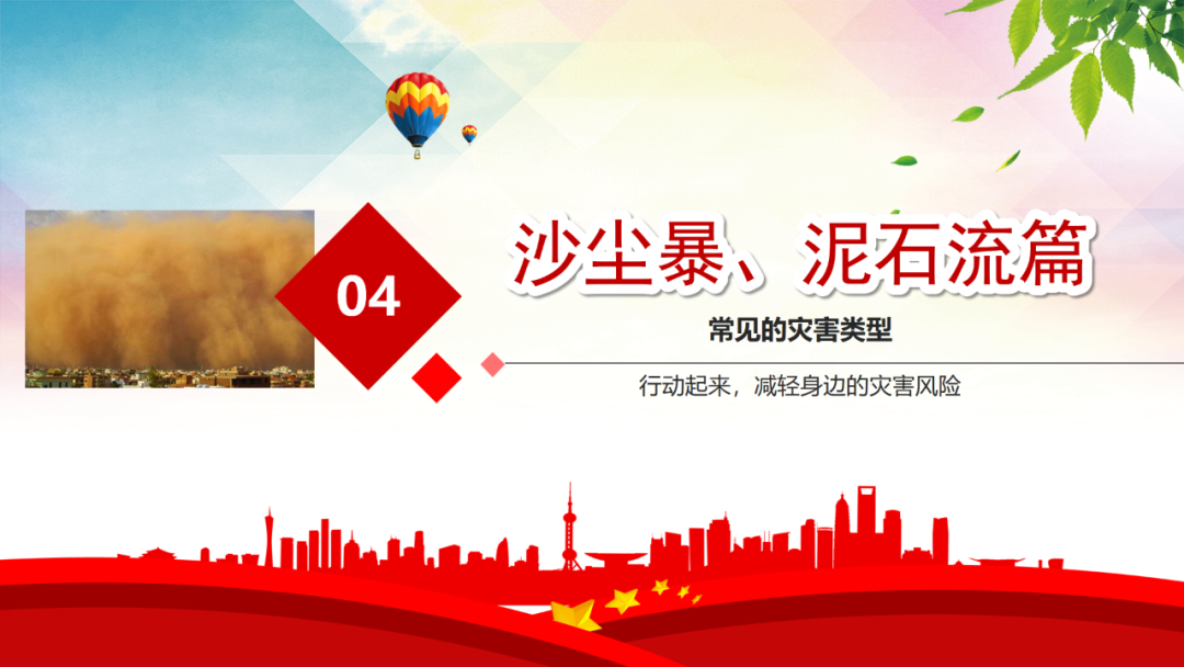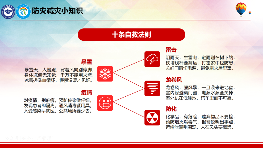 今年5月12日是我国第17个全国防灾减灾日,主题是“人人讲安全、个个会应急——排查身边灾害隐患”。5月12日至18日为防灾减灾宣传周。