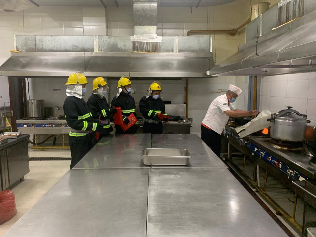 此次消防安全演练分别设定园林绿化区和食堂两个场景,进行了模拟火情、组织灭火等环节,过程安全有序、环环相扣。