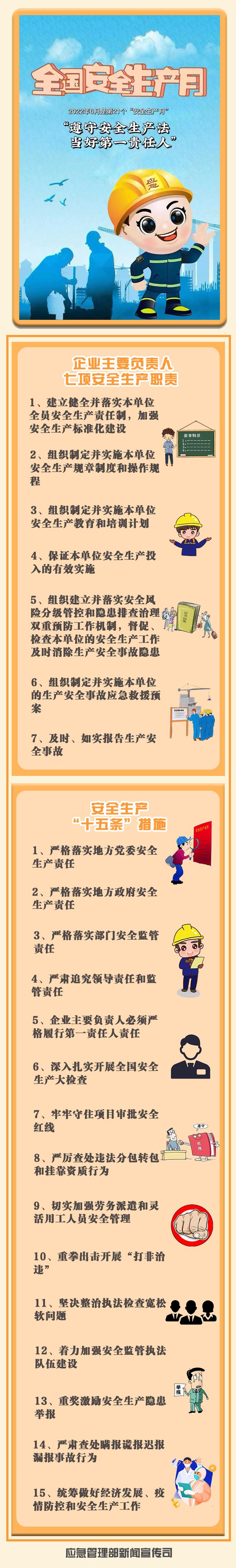 今年6月是第21个全国“安全生产月”,主题是“遵守安全生产法 当好第一责任人”