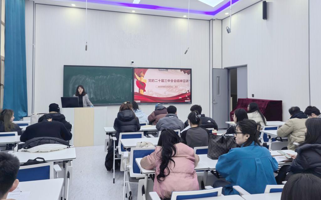张冰指出,学习贯彻党的二十届三中全会精神是当前和今后一段时期的首要政治任务,党总支宣讲小分队和师生党员要在学习宣传、全面把握、贯彻落实上下功夫,参与做好学院“十四五”发展规划任务落实,“十五五”规划谋划发展紧密结合,将学习成果转化为推动系内各项工作高质量发展的强大动力。