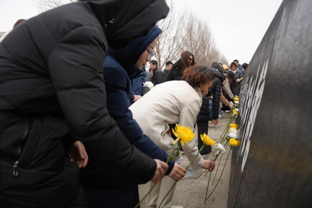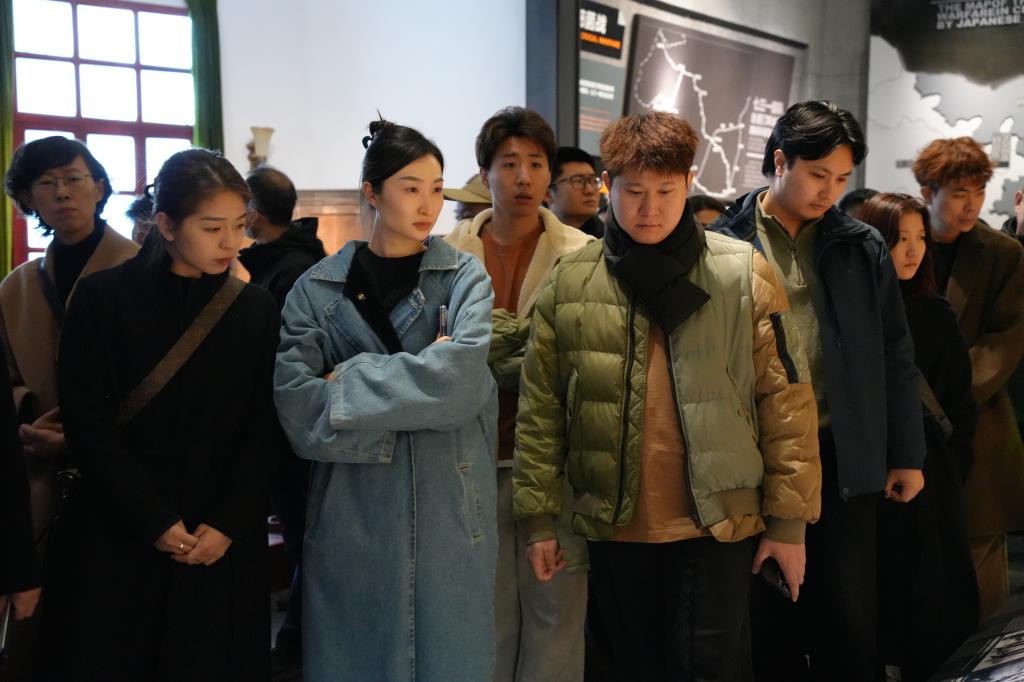 在陈列馆外,首先举行了一场意义非凡的缅怀仪式。全体教师肃立于遗址前,手捧黄白菊花,宣传统战部(党委教师工作部)副部长陆铭同志与教师们共同回望血色岁月、凝视历史棱镜、传承抗战精神。随后教师们纷纷献上鲜花,以寄哀思。