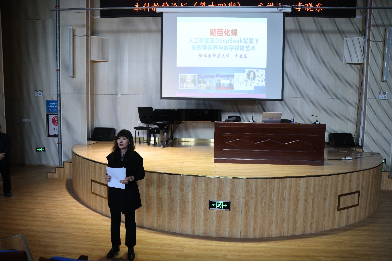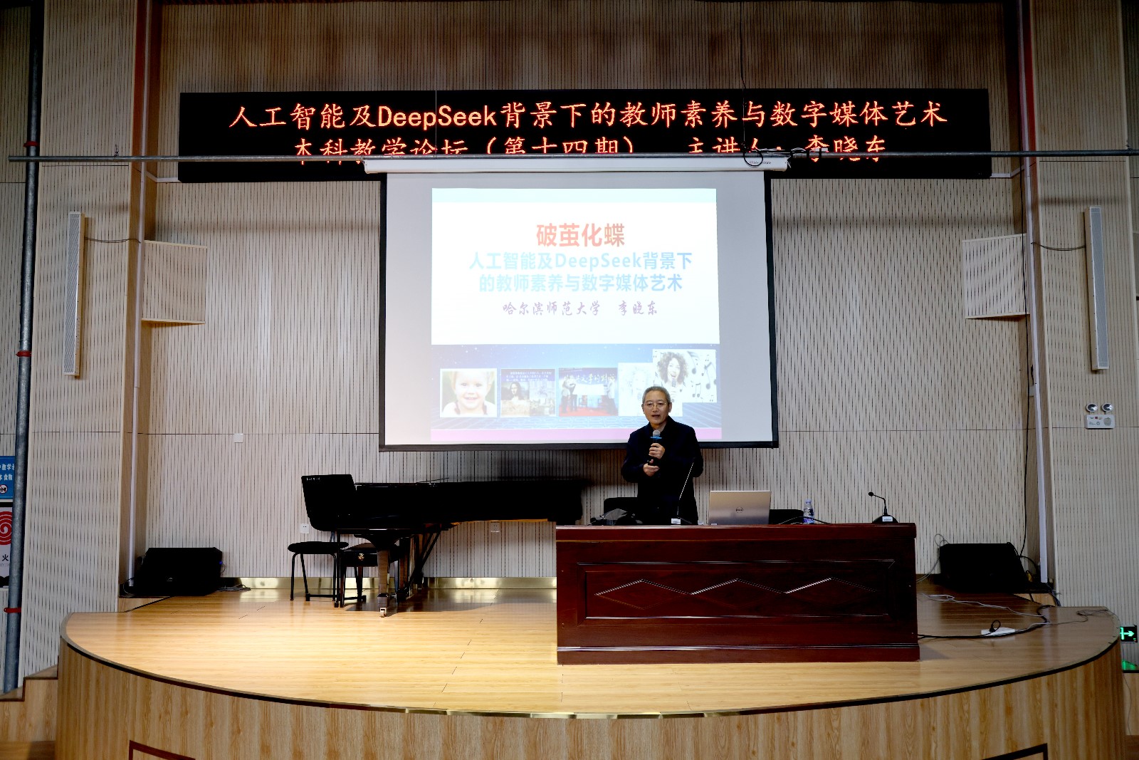 为深入贯彻《教育强国建设规划纲要(2024—2035年)》精神,进一步落实《永利23411集团一流本科教育创新行动计划》,加快推动人工智能与教育教学深度融合,5月7日,学院于“期中教学活动周”期间在主楼A220开展了第十四期“本科教学论坛”,哈尔滨师范大学李晓东教授以《人工智能及DeepSeek背景下的教师素养与数字媒体艺术》为题举办讲座,各教学单位师生代表参加。本次论坛由教务处处长兼艺术学系主任宋蓓教授主持。