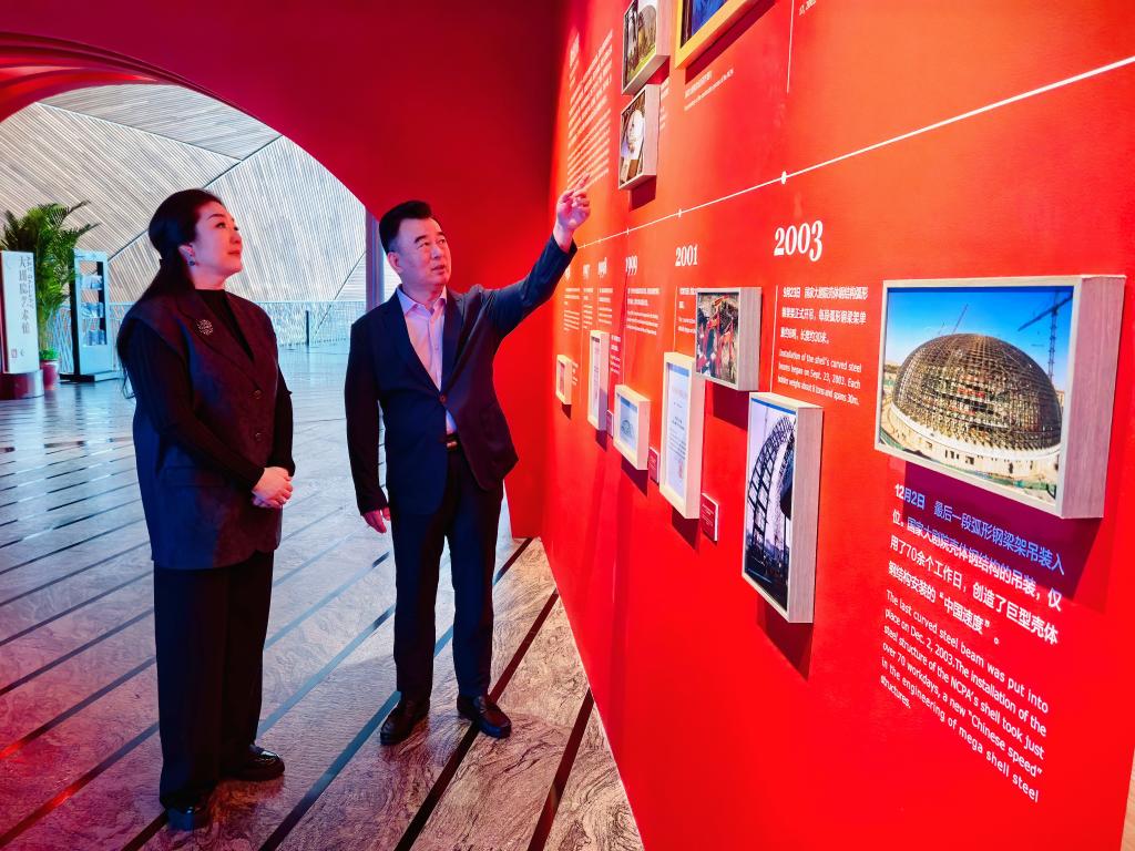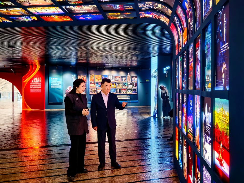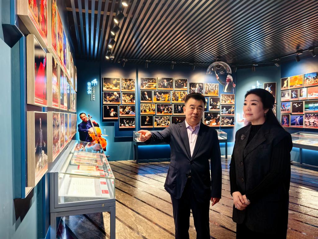 国家大剧院副院长张尧及相关职能部门负责人热情接待宋飞院长一行,带领参观了歌剧厅、音乐厅等多个专业剧场,重点参观了“永不落幕的舞台”国家大剧院艺术成果展,回顾国家大剧院建设历程、发展历史,展示了近年来国家大剧院经典剧目制作、国际文化交流项目、以及“一院三址”新格局、数字艺术新实践等方面的辉煌成果。