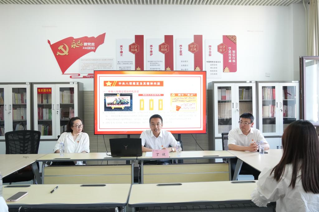 丁健结合学校工作实际,对如何在工作中贯彻落实中央八项规定精神,把党的作风建设引向深入提出了明确具体的要求。他强调,党员教师要强化学习教育,筑牢思想防线;要直面现实问题,查找作风短板;要全面深入整改,强化监督问效;要坚持开门教育,打造优良作风,以作风建设新成效赢得广大师生信任支持、促进学校教育事业高质量发展,为进一步全面深化教育改革、推进中国式现代化提供有力保障。