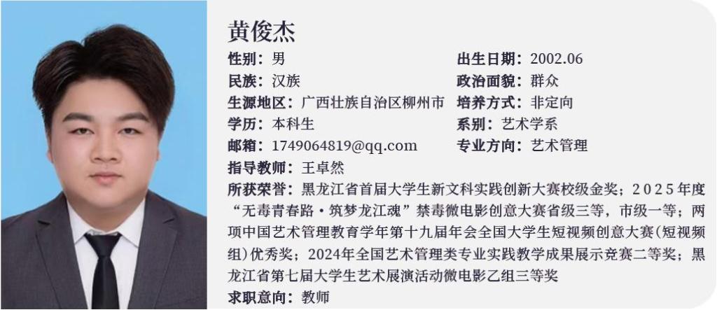 本科生:黄俊杰