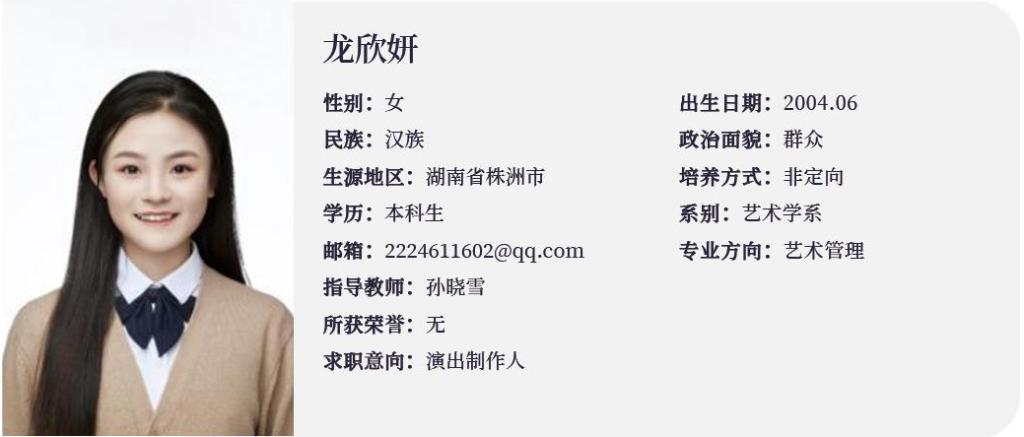 本科生:龙欣妍